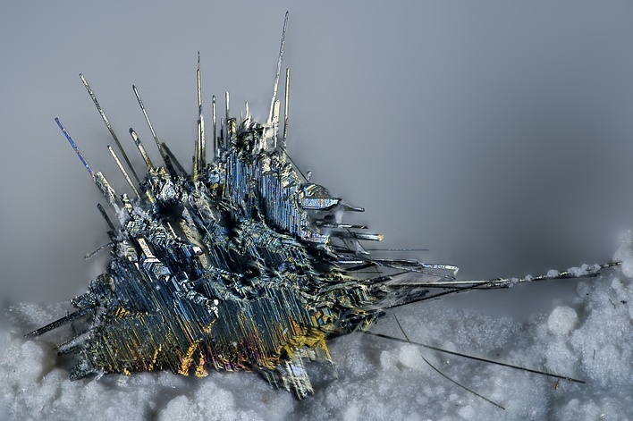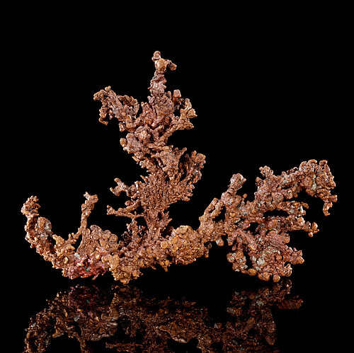 這些璀璨的單質金屬構成了一幅美好的畫面,它們似乎在向邊幅生長蔓延。這看起來……有點像海里的珊瑚,可銅本身的金屬光澤讓它們有着珊瑚望塵莫及的質感和色調。