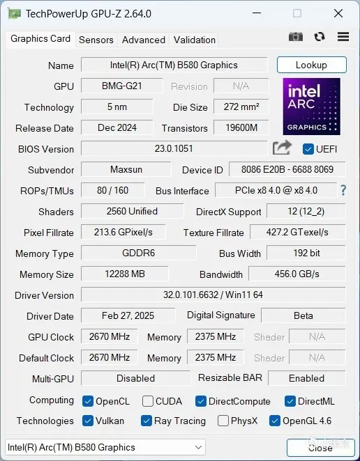 显卡:铭瑄 ARC B580 Milestone里程碑