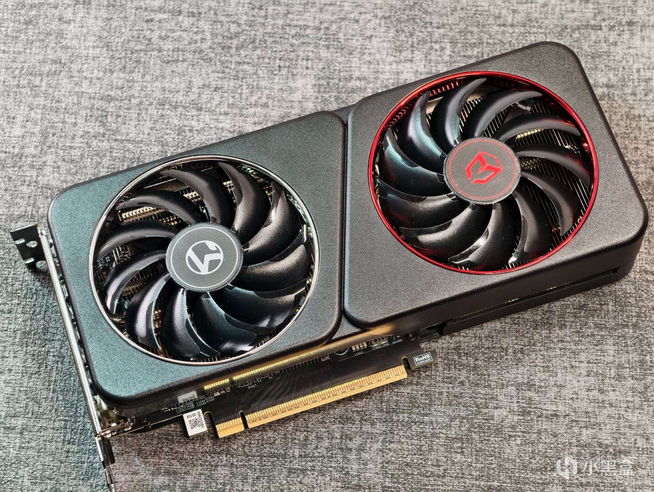 采用红黑配色,虽然整体为塑料材质,但磨砂处理后观感十分不错,两把11扇叶,9cm FROST风扇给这张游戏功耗比4060略高的B580散热绰绰有余。