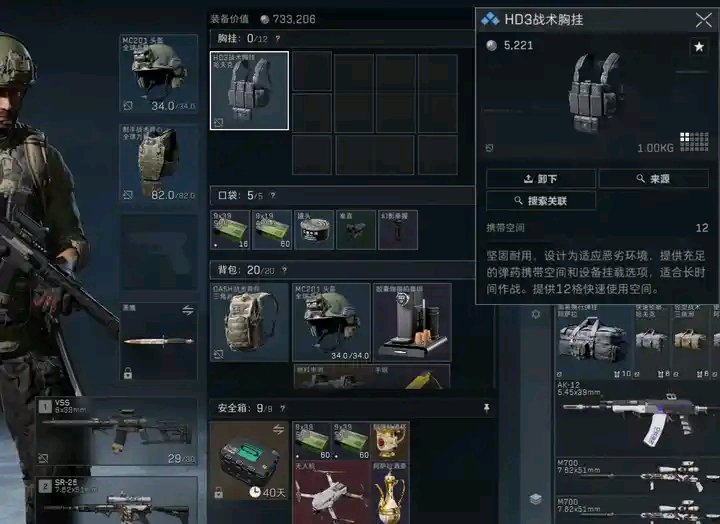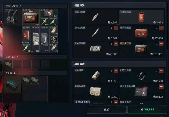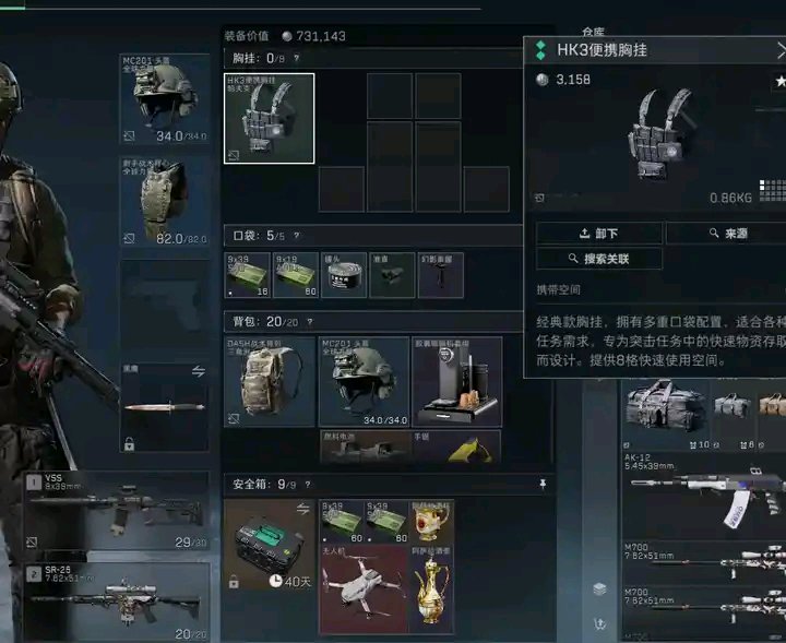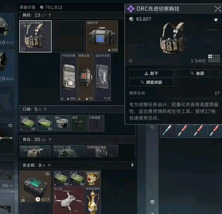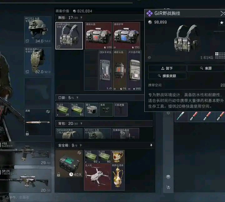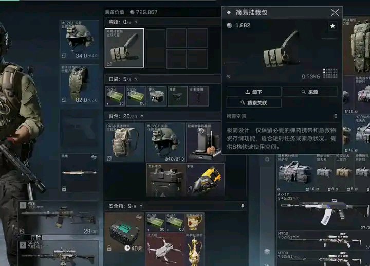 最實用性價比最高的純戰鬥用低級胸掛,剛好可以塞入兩格的手術包,急救包,頭甲修。三套帶槍只是想戰鬥奪舍別人胸掛揹包的性價比最優選擇。