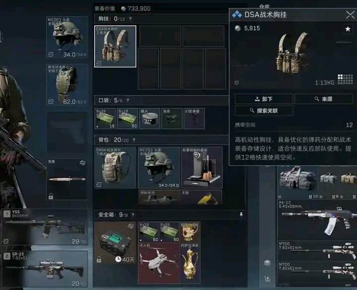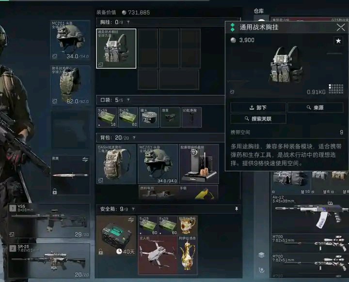 從這個胸掛開始價格就開始斷崖式上漲並且之後就沒有兌換渠道了只能靠購買獲得,這個胸掛比起dsa戰術胸掛只多了一個格子但貴了將近一倍。這主要是因爲他有一個橫向排列可以放下三格物品的地方,這個三格可以用來放置紫色的醫療包/手術包/頭甲修用於高強度激烈戰鬥時快速使用。這是最後可以在軍需處每日廉價兌換的胸掛了,之後的胸掛價格上漲幅度極大性價比也不好判斷。