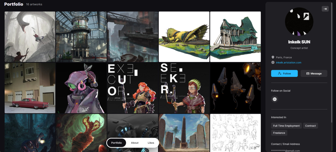 大约从2019年起,她陆续将自己的一些练习作品上传到了画师网站ArtStation。2021年时,Landfall联系了她,想要约两张角色设计稿件。