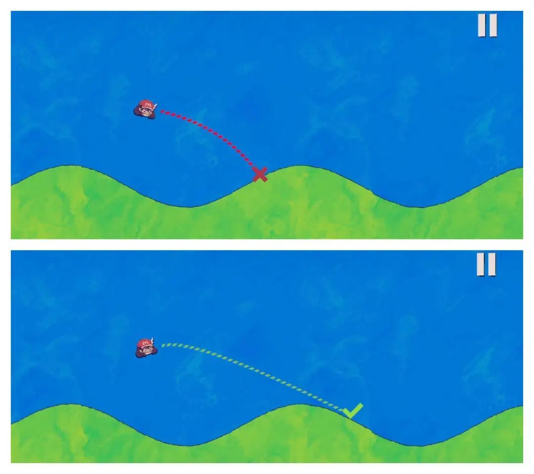 一进入关卡,玩家就会开始自动高速奔跑。在一路冲上斜坡后,人物就会短暂离地飞行,每次着陆都会根据玩家与地面之间的夹角进行不同等级的评分,也会得到对应级别的能量。这一评分机制既影响即时速度,又影响关卡整体的奔跑节奏。