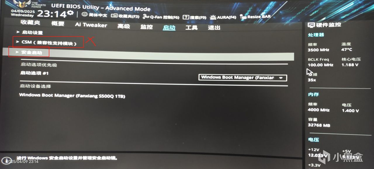 5.無畏契約win11安全啓動,關閉CSM,點開安全啓動,操作系統類型UEFI模式即可