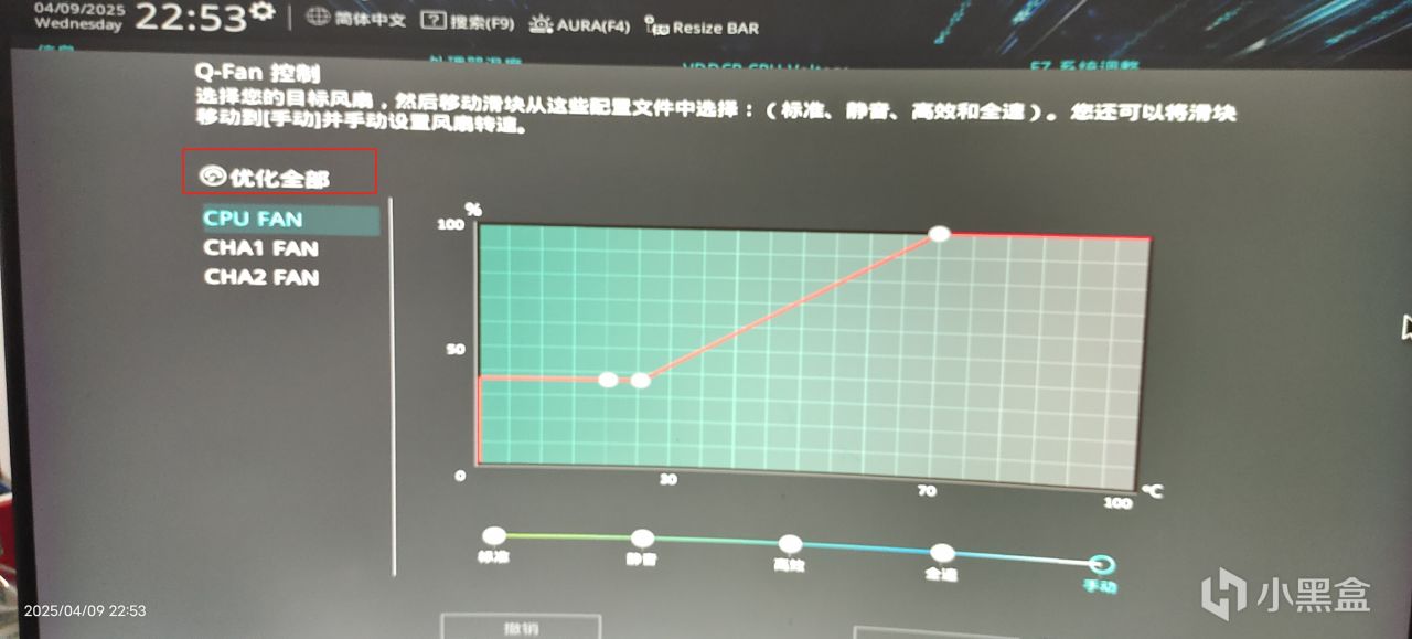 2.調節風扇,cpu風扇,機箱風扇轉速,點擊QFan控制,可以自行調整或者,點擊優化全部自動優化轉速