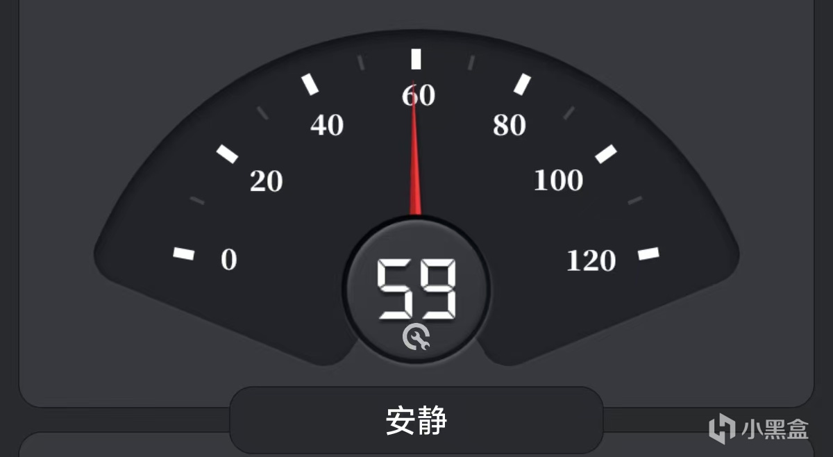 第一個是飛智BS1,調到超頻模式3000轉。此時手機分貝儀在人機位檢測到的噪音結果爲57分貝,但是我聽這個聲音感覺有點像吹風機第一檔聲音的大小,有一點嘯叫聲,但是不大,總體還能接受,比筆記本風扇最大轉速略小。