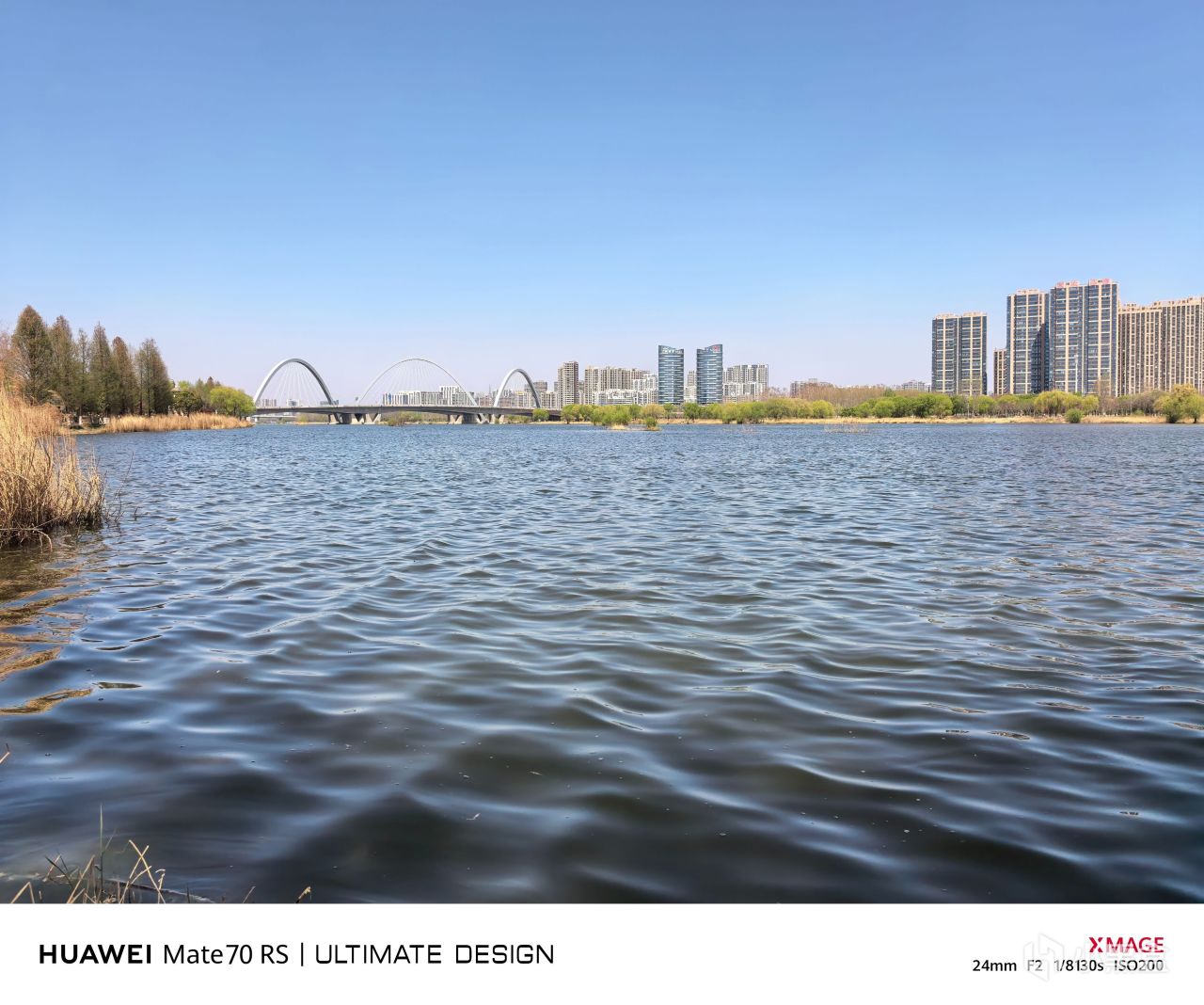 河面上漂浮的小碎叶,华为表现得更加清晰。再看两侧的楼宇和绿植,华为的优势就更加明显了。