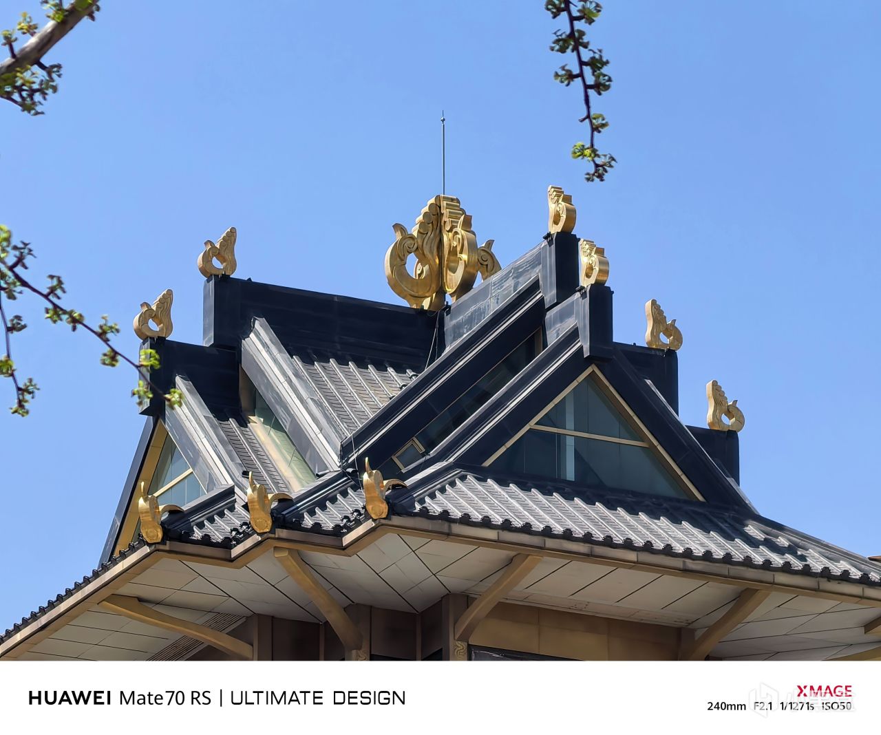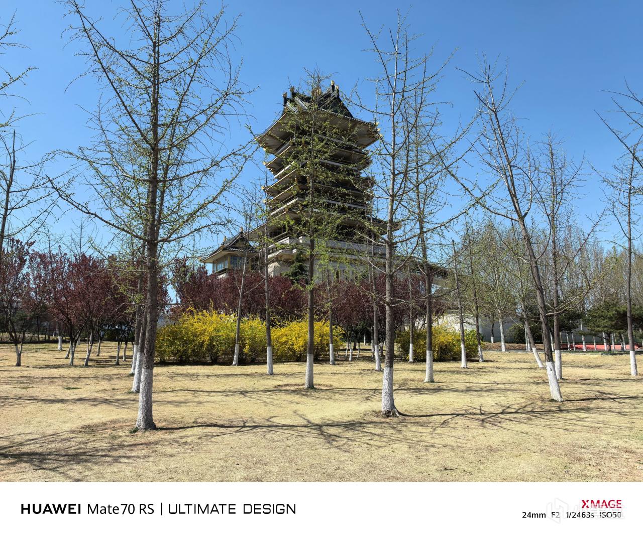 华为的长焦优势非常明显,不管是主建筑,还是近景处两侧的参照物,华为的细节,亮度明显占优。稍微做放大,iPhone的细节就会糊,但华为的样张,即便放大50%,细节依旧清晰。