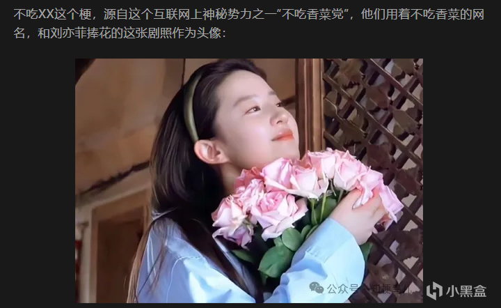 不吃香菜的评论只是一个网友的玩笑并非事实,甚至有更多营销号为了流量开始反串女生使用不吃香菜当网名用刘亦菲同款捧花图片当头像然后再各个评论区发表逆天言论,除了营销号也有不少无聊的网友也用着这个网名和头像在各个评论区玩梗,然后评论区开始纷纷响应:没错,我也碰到了,没错,我身边就有等回复,然后一些营销号就在评论把这些评论截图下来,开出了一些列这样的话题比如:认识女生最应该避雷的网名,什么网名的女生心机最重,让这个梗热度一直持续上升。