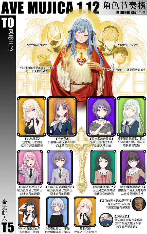 如今,距《Mujica》完结已经一周过去了,论坛上对这部作品的评价也早已沉淀,有的人因为最后一场live选择了和解,有的人因为自己喜欢的角色被毁咽不下这口气,有的人觉得能提供接连不断的乐子《Mujica》已经成功了。