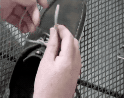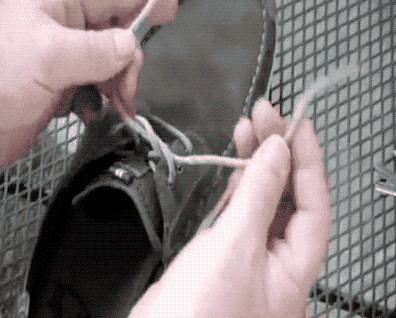 能打基本的奶奶结和方结,我们就要对真正鞋带的结下手了。同样的,先打第一个结。(这个动图里打第一个结时,是拿左边的绳子从前绕过右边的绳子。)