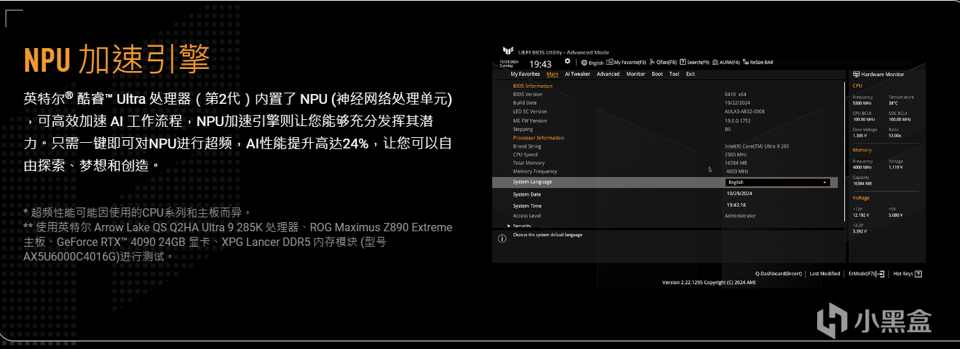 华硕针对英特尔的CPU专门打造了NPU加速引擎,可对NPO进行超频,不过NPO的算力嘛,就那样。