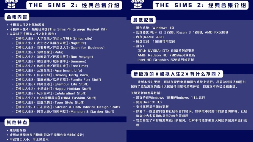 2025年重制版《模拟人生2》以兼容Windows 10/11系统、原生宽屏和高分辨率支持为核心卖点,试图让经典玩法与现代硬件无缝衔接。画面渲染的优化使角色动作更流畅,场景细节(如丛林植被、海洋动态)更具沉浸感,部分玩家称赞其“重现了2004年的感动”。