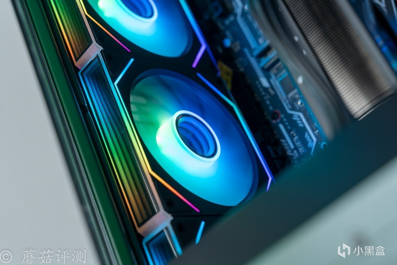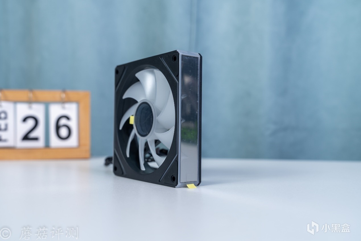 ▼机箱风扇的颜值不错,扇叶是乳白色的,中间有无限镜设计,四周还有一些乳白色的RGB灯带。