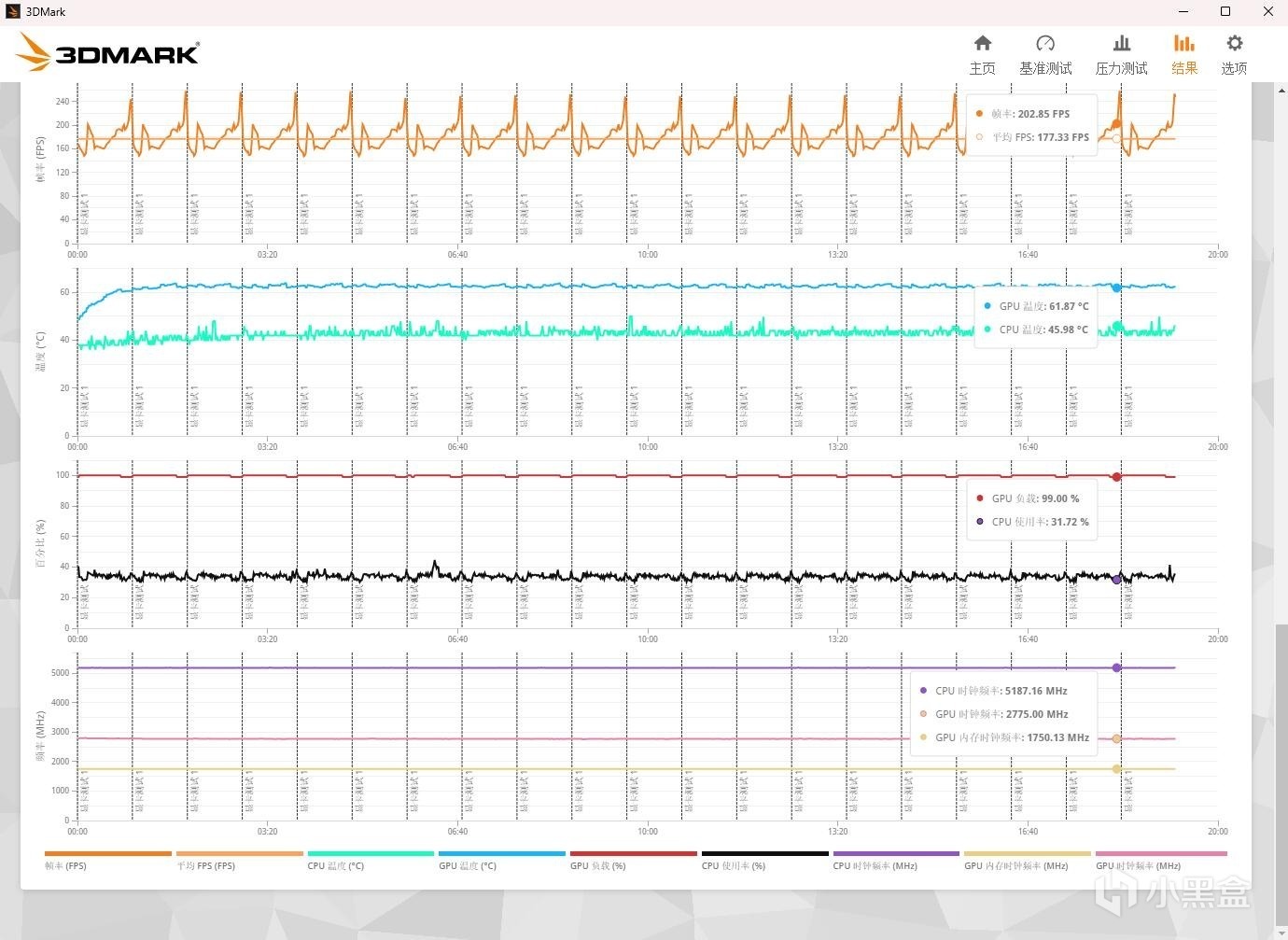 ▼跑个3Dmark的压力测试,TS模式,帧数稳定率在99.6%,非常稳定。