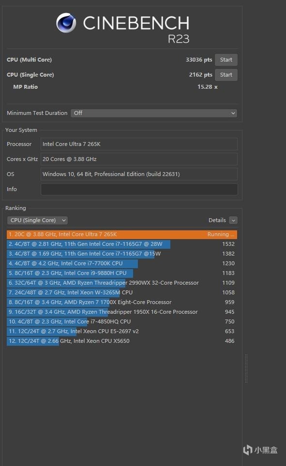 ▼跑个CineBench R23测试,单线程得分2162,多线程得分33036,这个多线程的性能,真强啊,同价位的那谁,也就这个一半多。