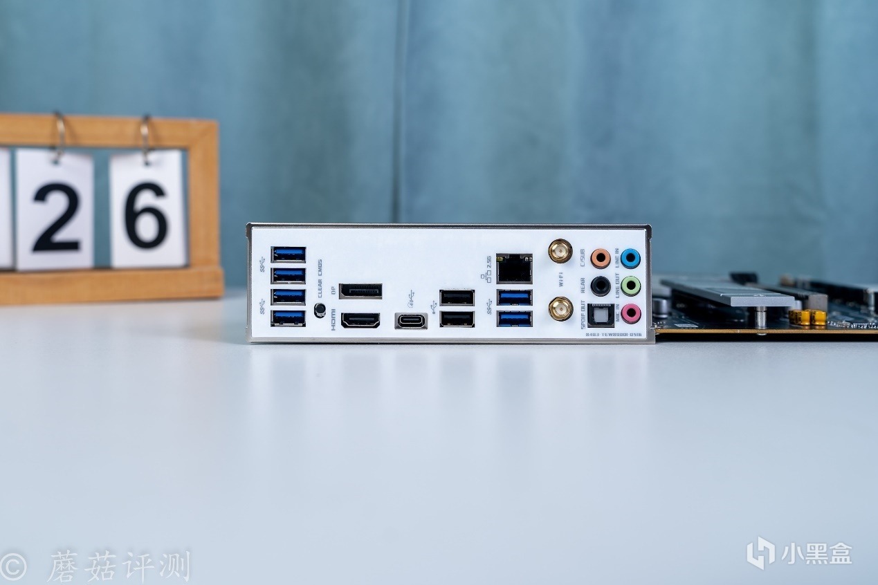 ▼主板后部的IO接口方面,非常对得起价格,中间40Gbps带宽的USB Type-C接口非常显眼。