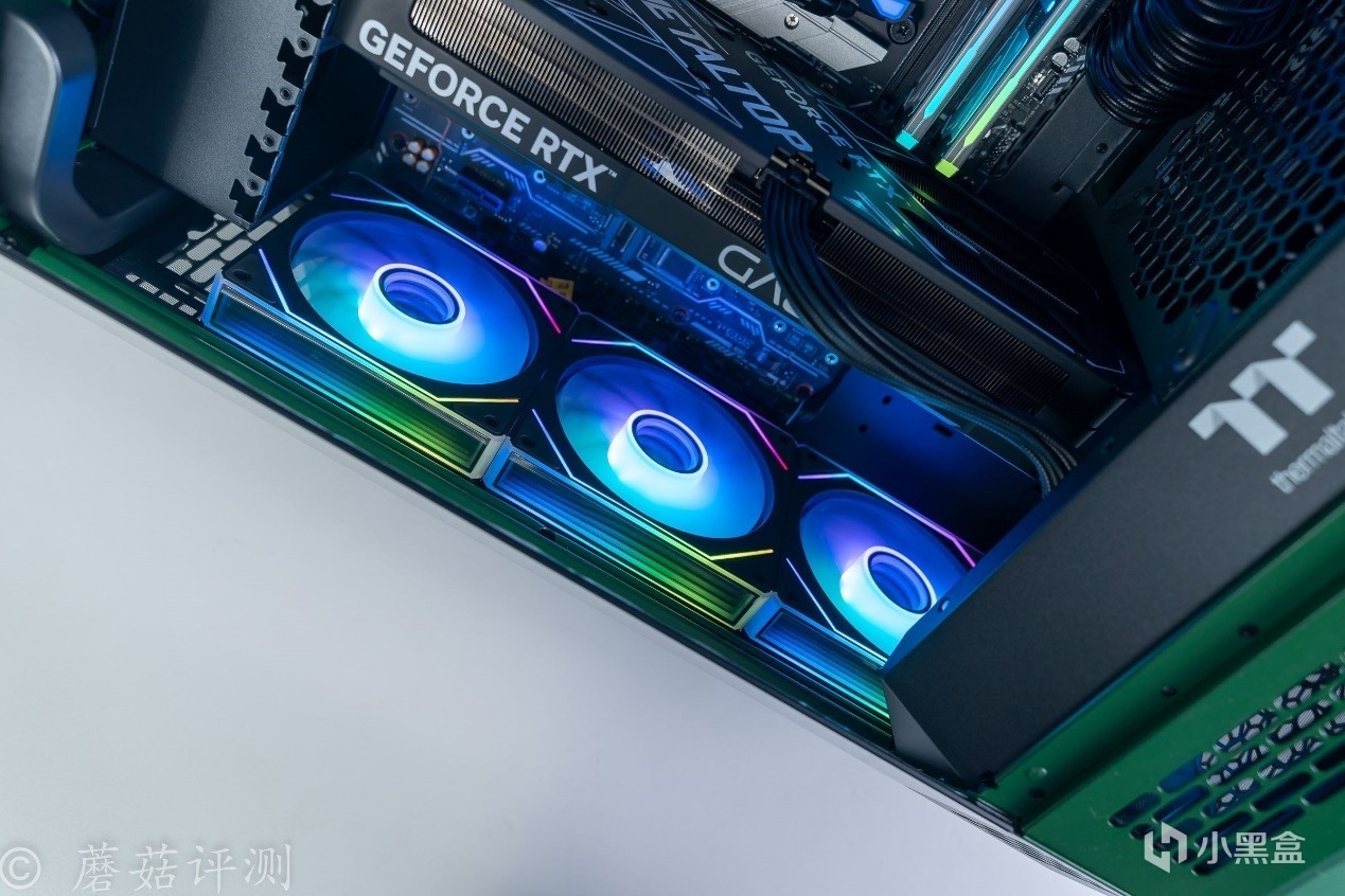 ▼风扇选择了Thermaltake的钢影透镜限定版,和水冷一个主题的。