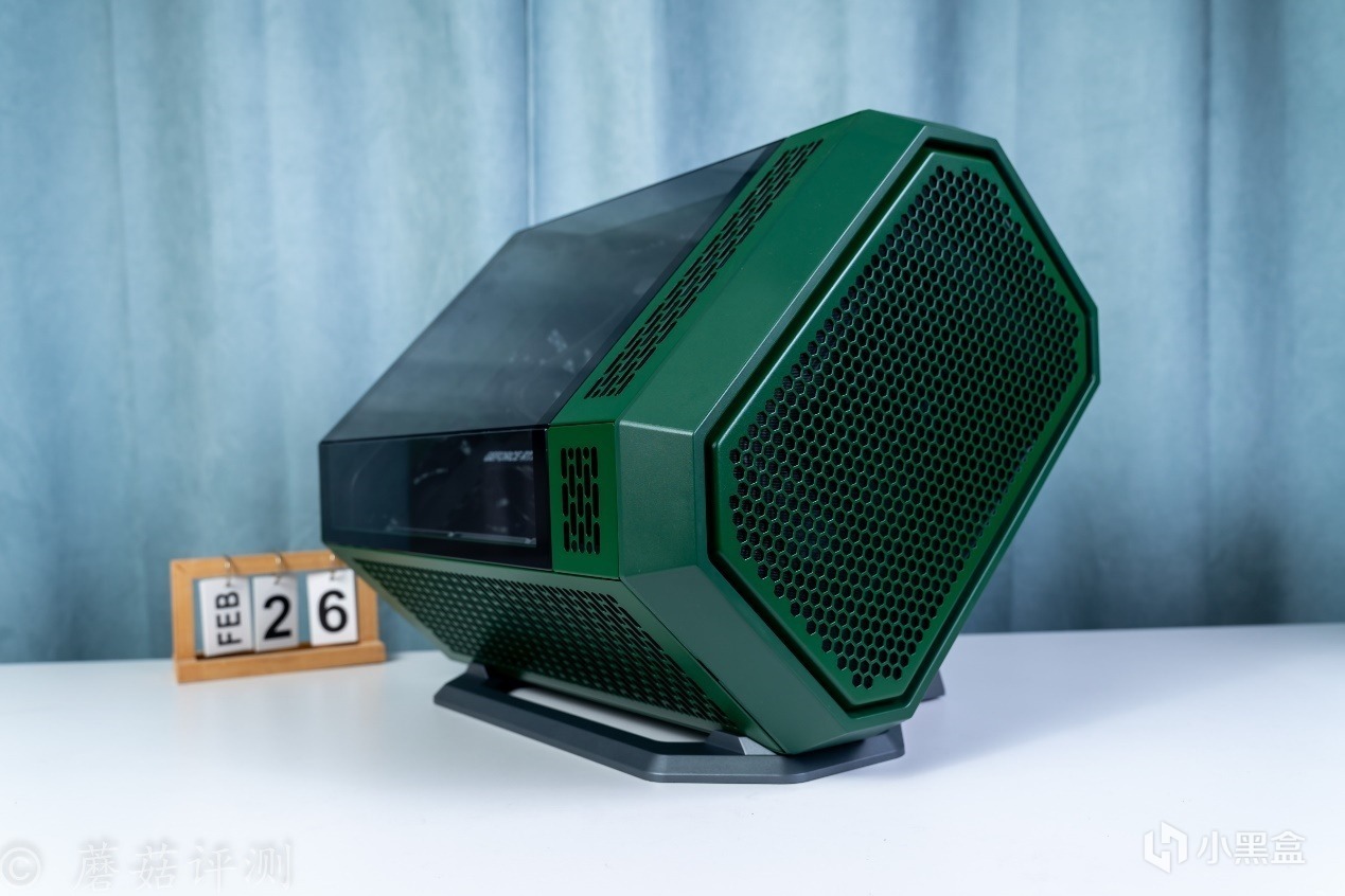 蘑菇个人感觉,这款机箱默认的竖直的状态,整体的表现也非常好,显卡竖装,完全不用担心显卡受力问题,还可以轻松搭建垂直风道,散热效果肯定没问题。当然了,躺下也很好,视觉观感更个性!