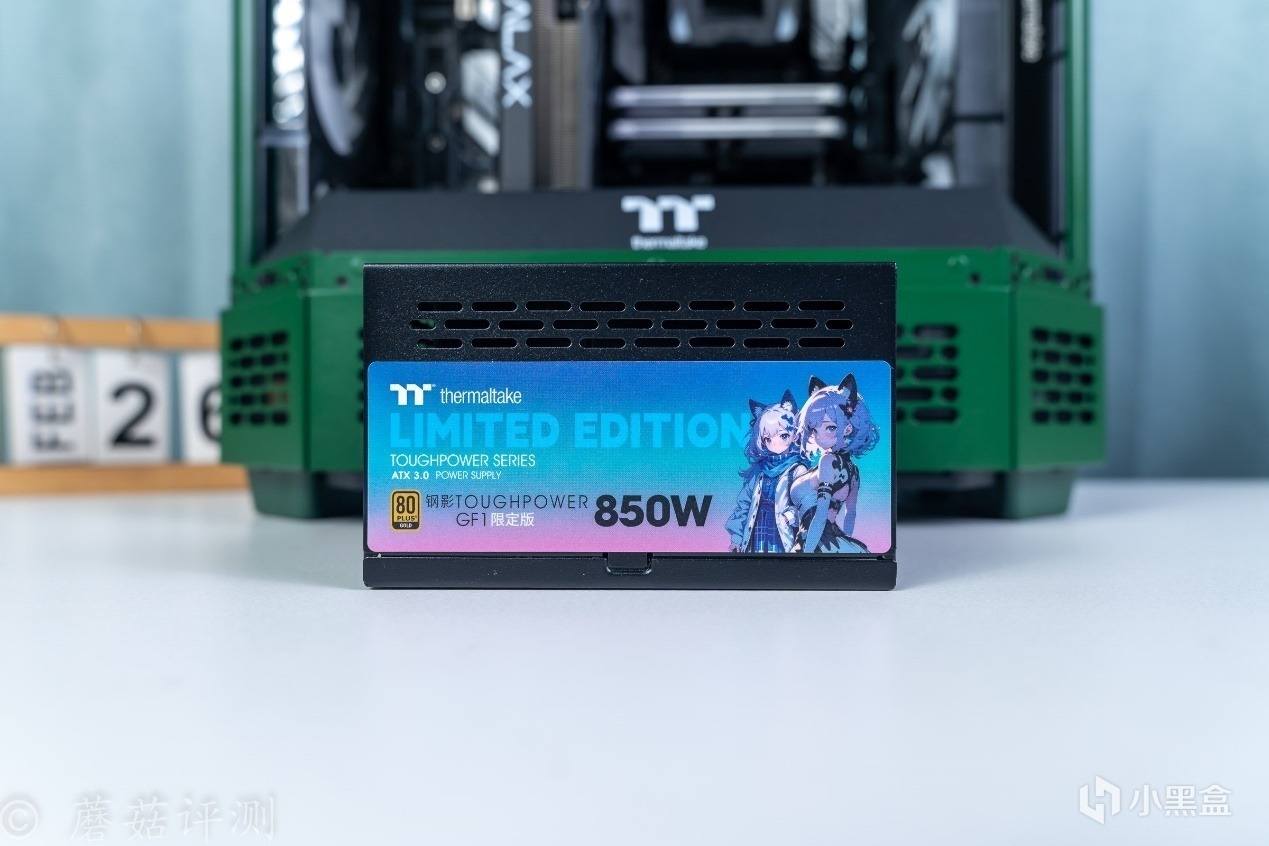 ▼电源用的是Thermaltake的钢影GF1限定版850W金牌全模组电源,这款电源支持ATX 3.0,标配PCIe 5.0供电接口,可以轻松满足这套硬件的供电需求。