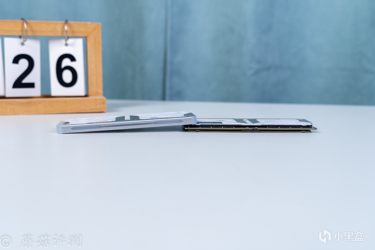 ▼内存条侧面是多段式的RGB灯带,乳白色的RGB灯带巧妙的和内存的金属马甲融合到一起,整体呈飞翼状,还巧妙的充当了不同表面处理的金属马甲的分界线。