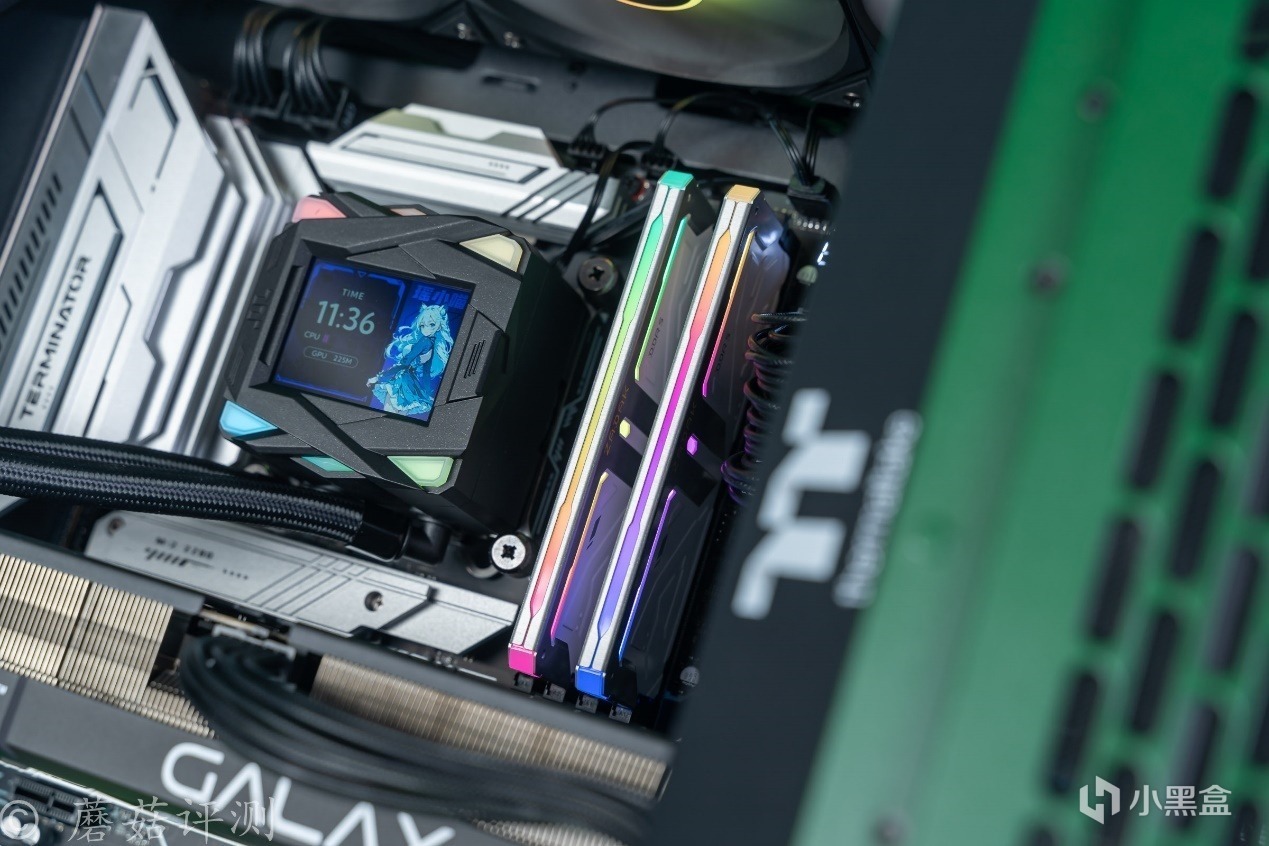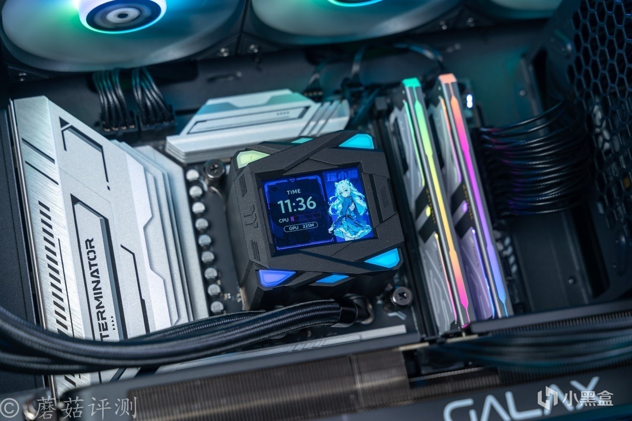 ▼水冷头顶部的屏幕显示效果还不错,屏幕四周的乳白色部分支持ARGB灯效,支持主板同步。