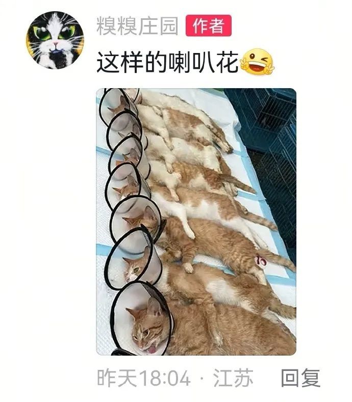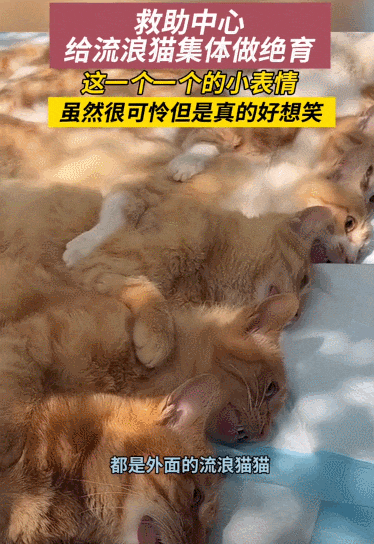 4月3日,江蘇,救助站給流浪貓集體做絕育,4小時絕育57只流浪貓,做完手術麻藥還沒過的貓貓躺成一排喇叭花。