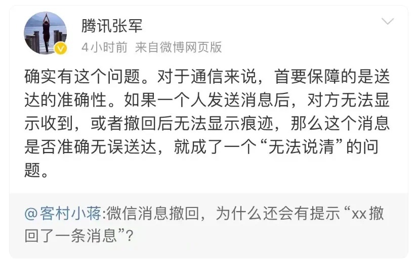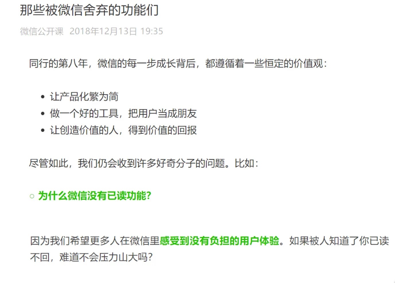 微信有很多這種例子,你說微信團隊是沒有能力做嗎?有些功能可能確實不好做,但有些明顯輕鬆就能完成的也不做,那就又回到微信的價值觀上了,對功能的增加異常剋制。