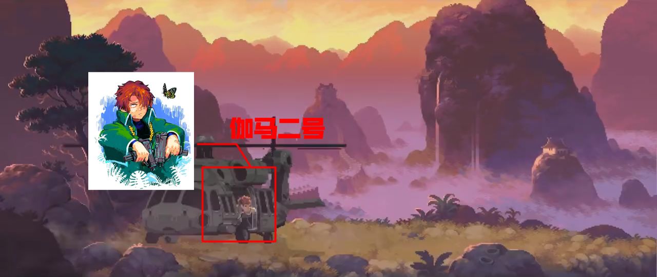 下一镜头将上半部分的直升机与神秘的东方场景结合在了一起,直升机第一个下机空无成员疑似2022年展示空无成员————“伽马二号”,估计为过去新麦加政府对克罗马农入侵的开始。