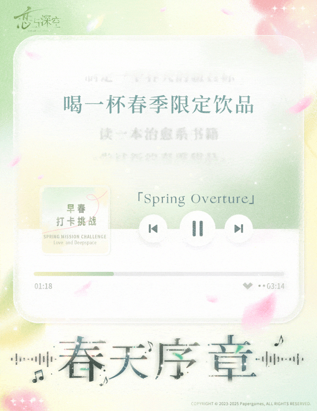 比如说,女性向之于叠纸。后者的旗舰产品《恋与深空》在3月迎来了自己的3.0年度版本,期间发布了多个以不同主角为主题的内容活动,同时还结合“春日约会”做了众多游戏外的宣发动作,使得游戏一直保持着较高的曝光度与讨论度。