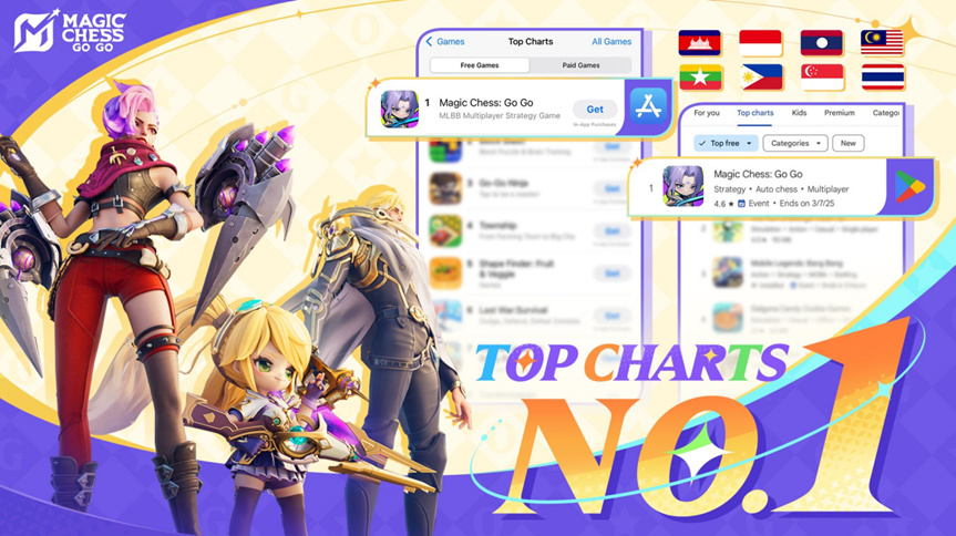 值得一提的是,沐瞳近期还在海外上线了“MLBB”的自走棋衍生作《Magic Chess: Go Go》(以下简称《MCGG》)。游戏在全球自走棋品类日渐沉寂的当下,却交出了一份算得上是“惊艳”的答卷:上线即登顶8个国家免费榜榜首,下载量突破1500万大关,成为了近些年来表现最好的自走棋新品。