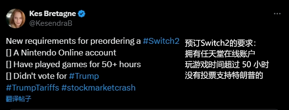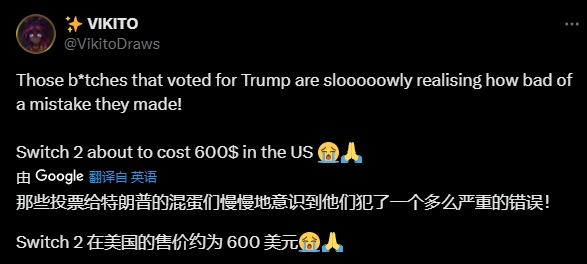 言外之意就是如果算上關稅的話,那美國Switch2的首發價可能還要再漲漲......