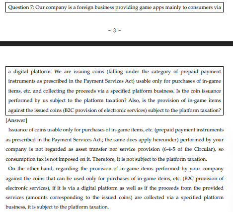 日本国税厅发布的官方文件进一步回答了这一消费税对游戏内物品的具体影响。简单来说,如果游戏公司发行的游戏内物品为和对应金额价值相等的氪金道具/货币,就需要缴纳这10%的平台税。