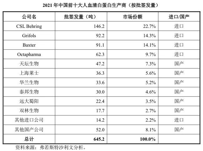 目前全球血漿供應總量的70%都來自美國,而國內接近40%的人血清白蛋白也都是美國進口的。