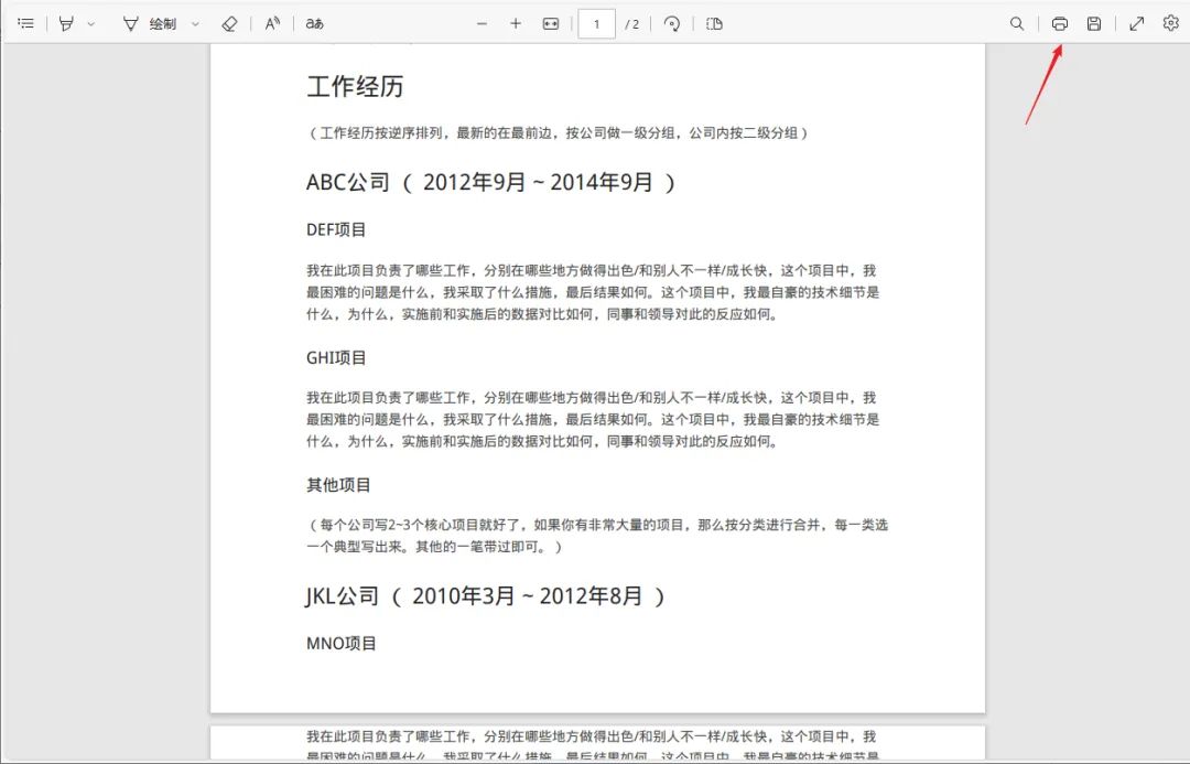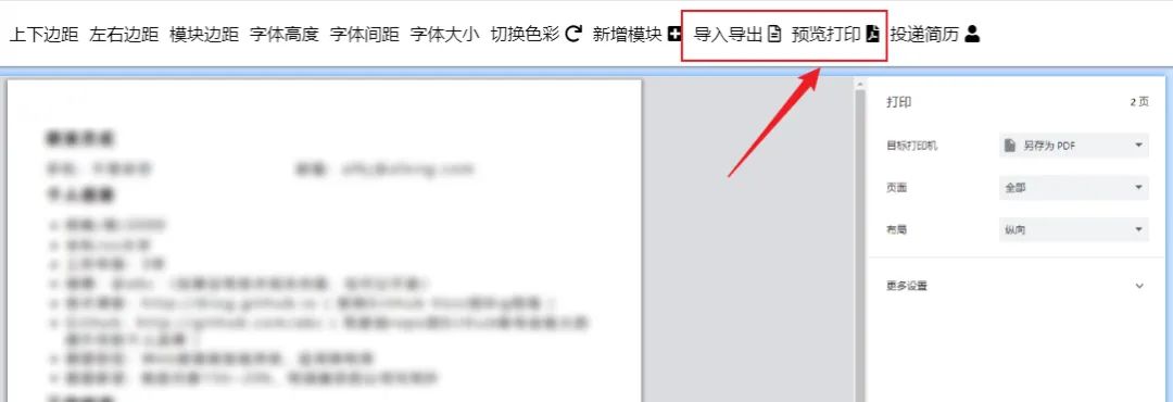 生成後的簡歷可以保存爲Markdown格式或PDF文件,如果是PDF格式還可以一鍵打印簡歷,非常方便。