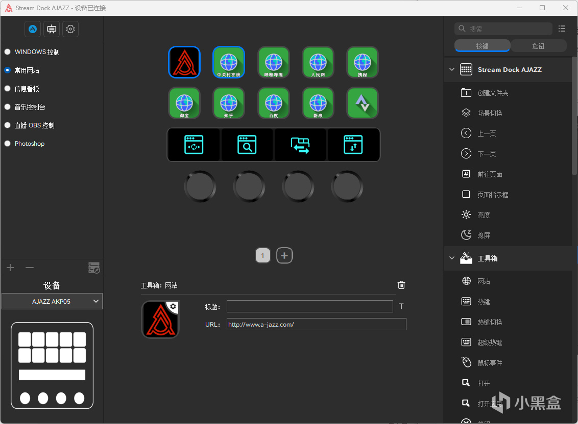 不过这些按键到底怎么设置呢?就拿网站进行举例,下面的URL就是网址,然后我们给它起个标题,并且更换一下图片即可,是不是还挺方便的,同时在右侧还会有一系列的工具