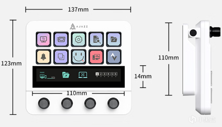 不过在看驱动之前,先让我们来看看,它究竟搭载了哪些东西,首先映入眼帘的就是十个按键以及一个触摸屏,按键的材质是亚克力材质,按压下去的感觉还算舒适,触摸屏则是PC材质,至于它们究竟要怎么使用呢?请兄弟们慢慢往下看。