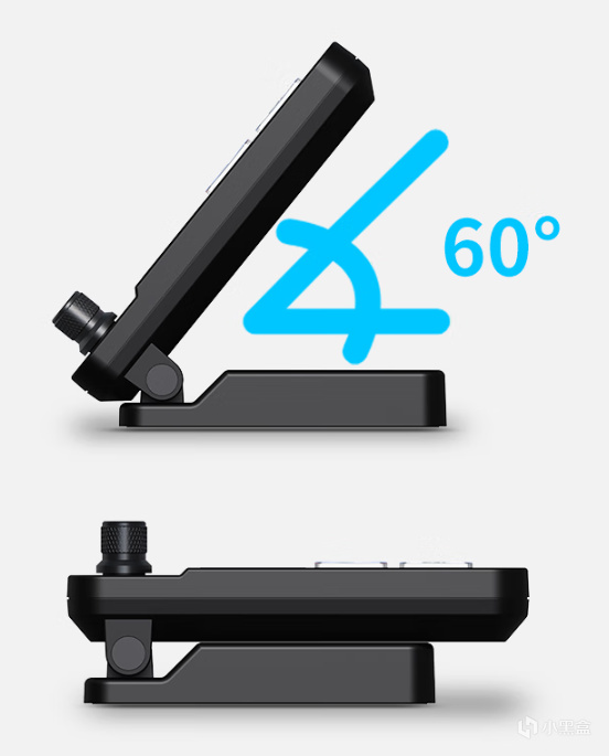 同时为了兼顾到各种各样的桌型,它还搭载了一个可调节的支架,角度是在0-60°之间进行调节的,而且连接处非常的紧,完全不用担心突然往下倒的情况。
