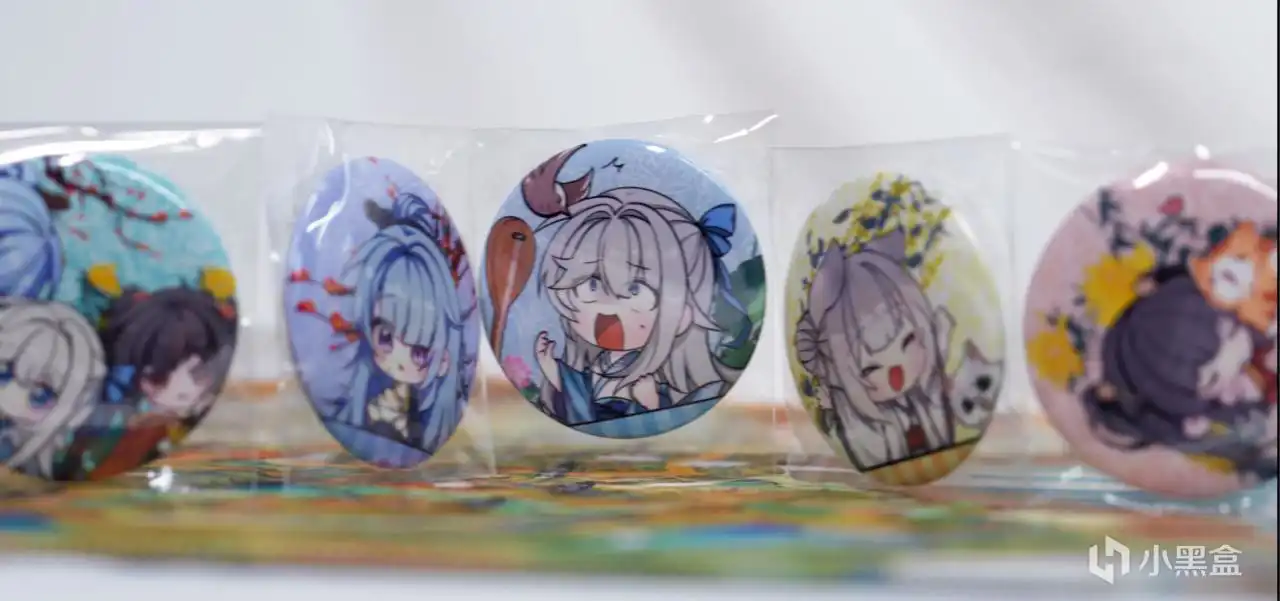 覆膜吧唧,一共是五个款式,四个角色的QQ人和一张合影~合影款作为众筹目标已经解锁了免费赠送,所有参与众筹实物档位的玩家都可以免费获赠~