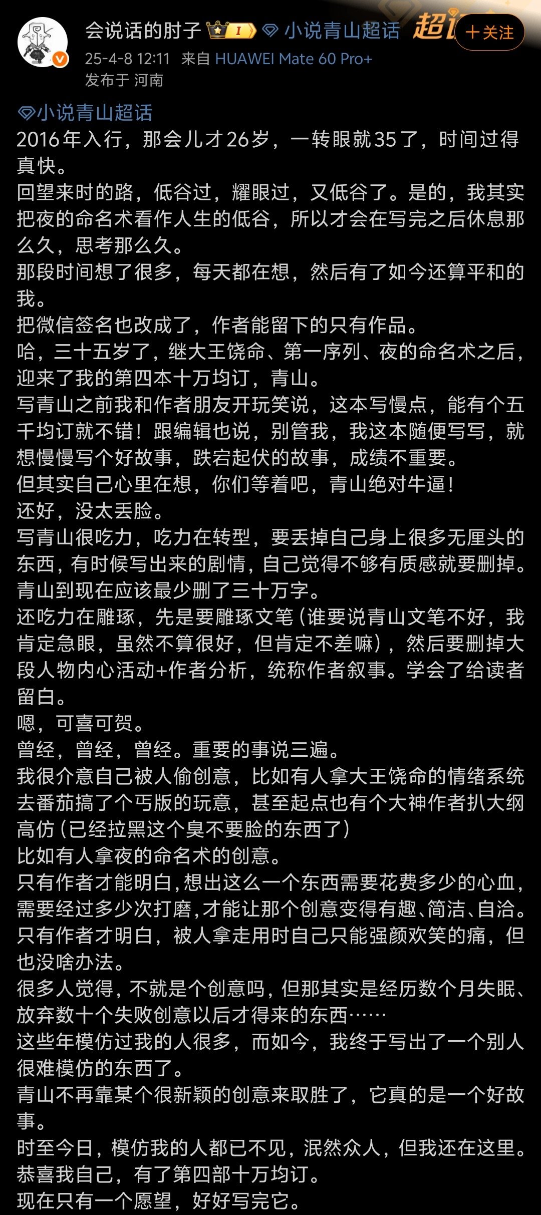 二、肘子《青山》破10萬均訂,開炮怒斥抄襲者