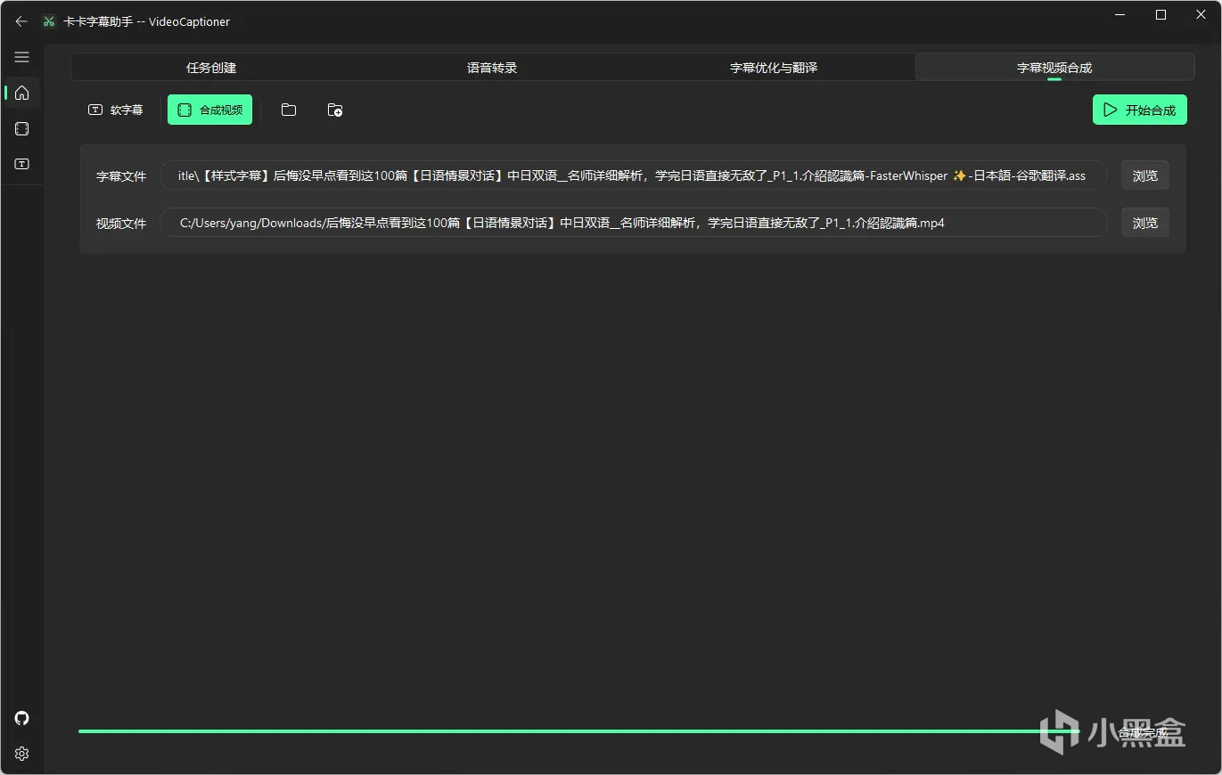 第二個文件是語音識別提取的字幕文件,第三個文件是翻譯後的字幕文件,第四個是自動合成字幕的成品視頻。完全OK。