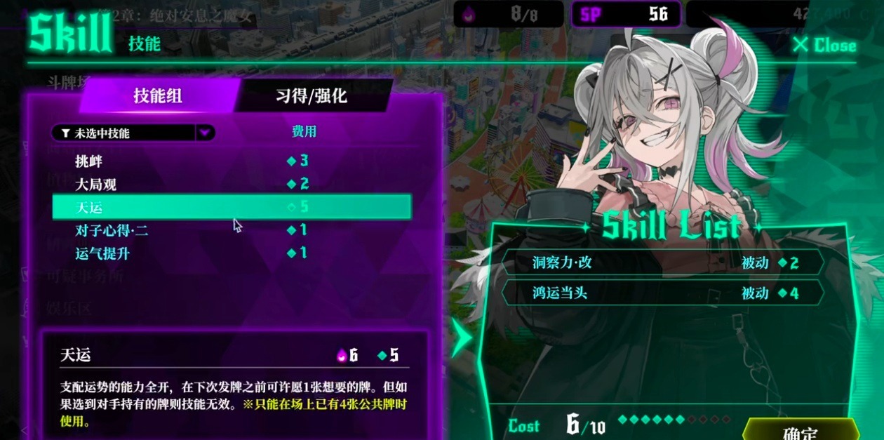 其中最重要的莫过于【天运加挑衅加all in】,天运能让你在公共牌有四张的时候,直接在下一次发牌的时候许愿一张牌,挑衅则是让对方无法弃牌,all in打出之后能快速解决战斗。