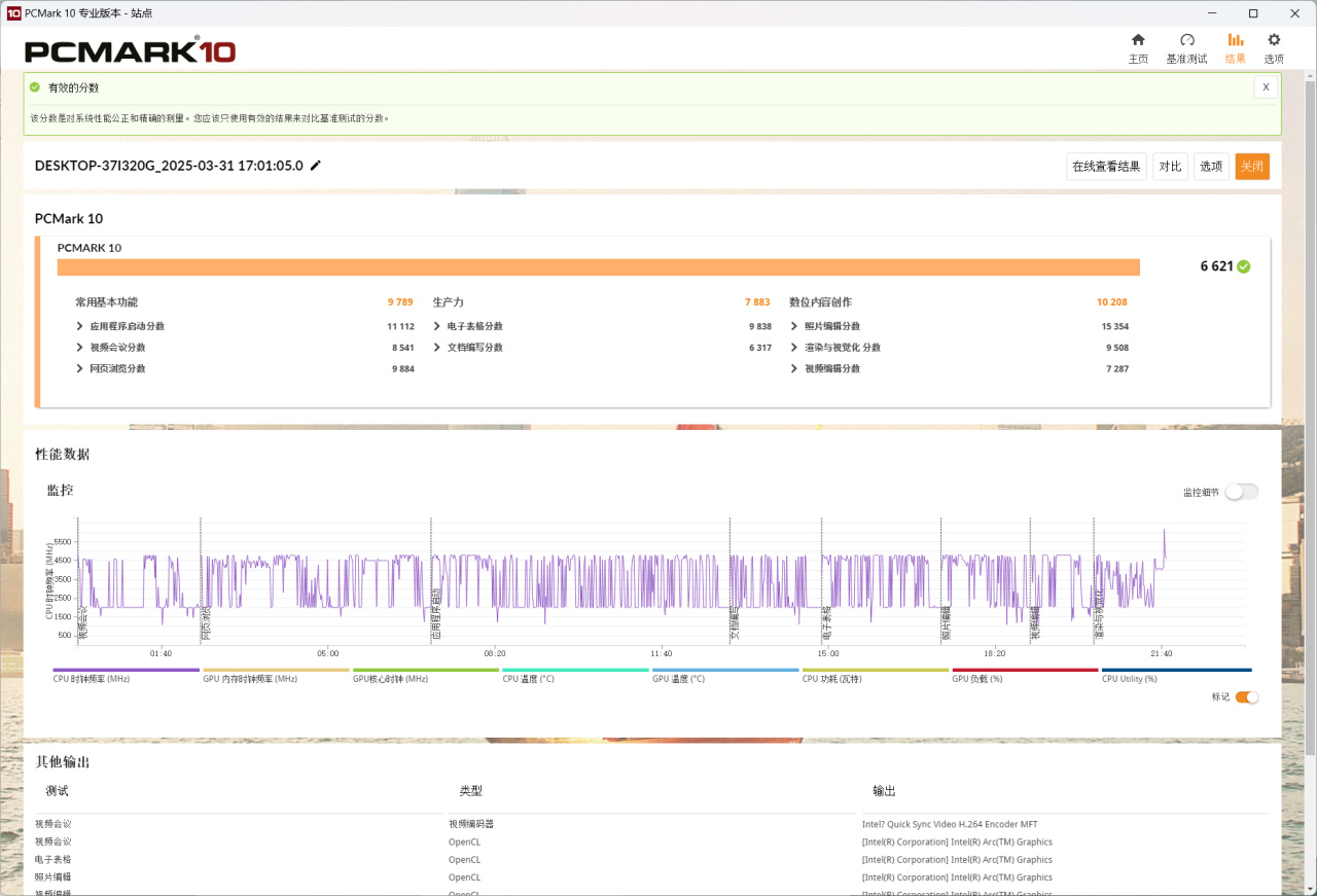 PCMARK 10测试的是整机的生产力性能,装了玖合DD5 5600 64GB套条后,我这台NUC的综合得分为6621分。