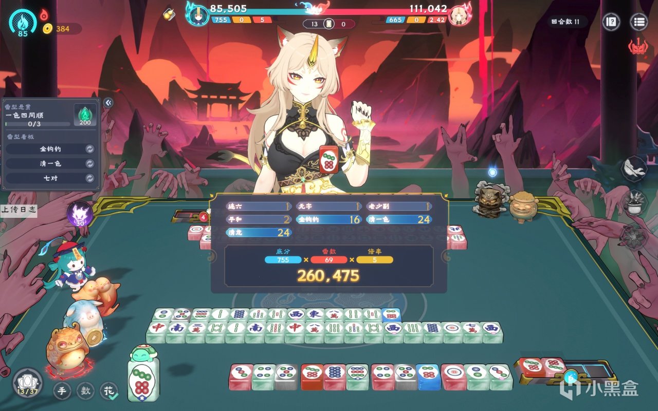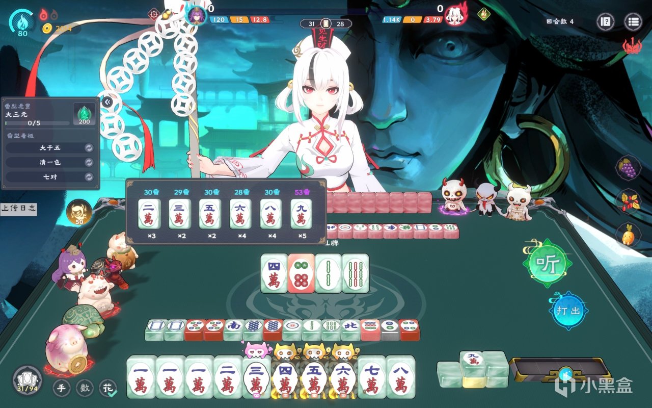 同时可能会有人注意到桌面上左边一堆像娃娃一样的可爱灵俑:他们就像小丑牌一样可以给玩家提供构筑效果。在前期可以靠牌技和运气打麻将,但在后期就必须靠它们去提升分数。