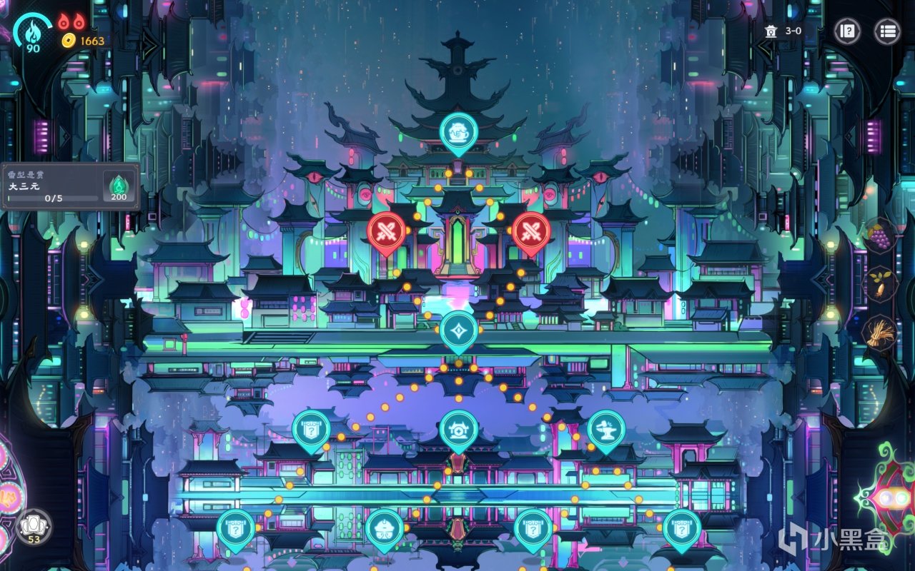 尤其是到了地下三层,这背景跟2077的赛博霓虹灯牌有的一拼:这哪是地府阴间,这简直就是大唐不夜城!