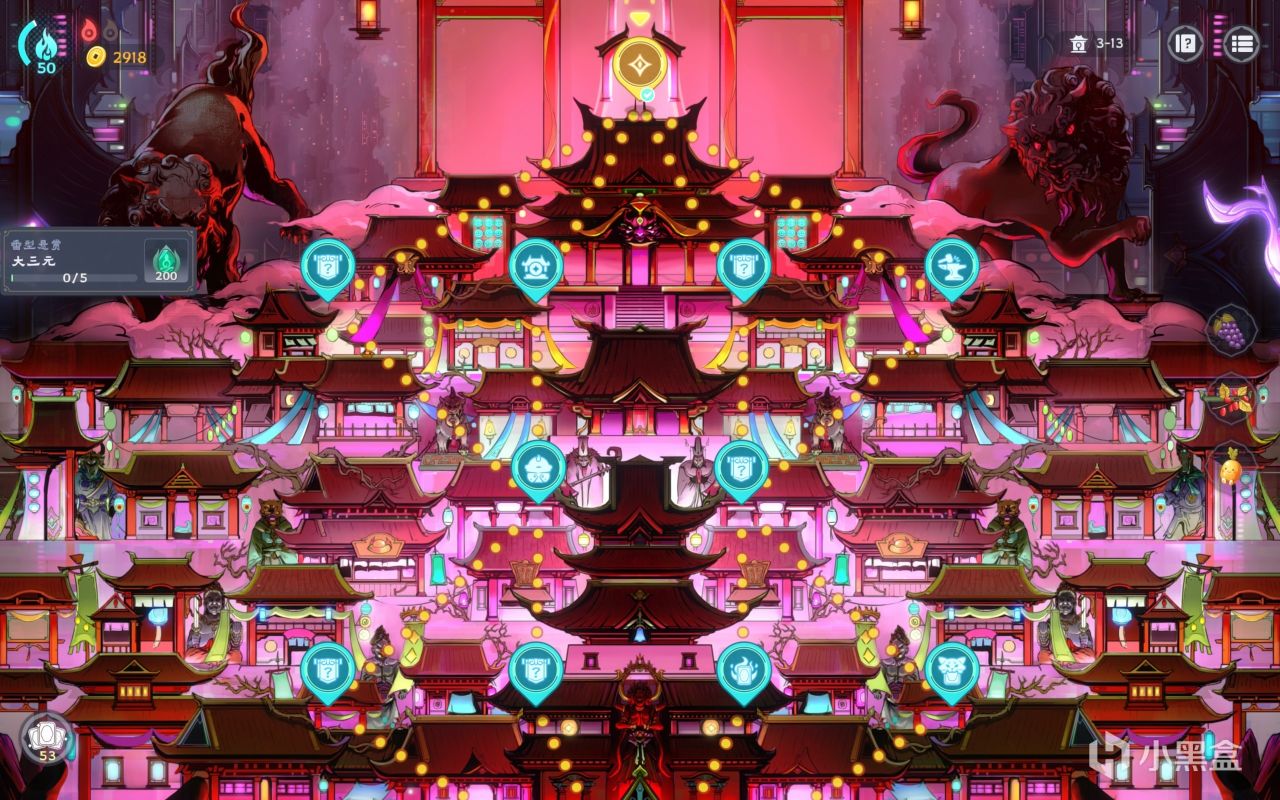 它的地图虽然采用了爬塔类游戏的分岔路线(比如杀戮尖塔),但不管哪一条路的最后都是有且仅有的一场boss战,看起来又像是小丑牌的盲注。