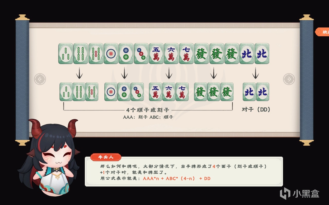 它不像川麻一样可能看两把就能彻底精通,需要在游戏实战中进行大量的番型学习。