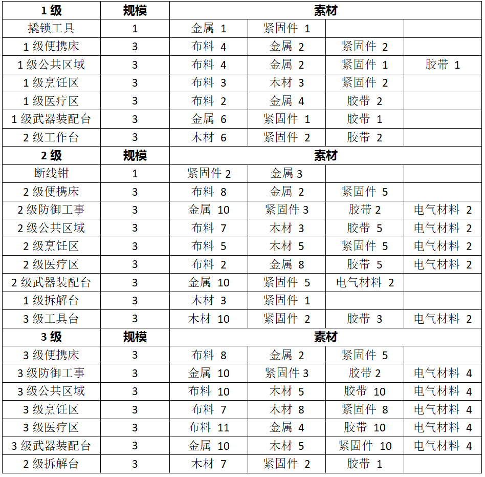 目前測試可知每個搜刮點只有前1-2項爲固定材料 因此無法統計每個地點的具體材料 只能通過搜刮點數量來反映出大概的材料豐富程度
