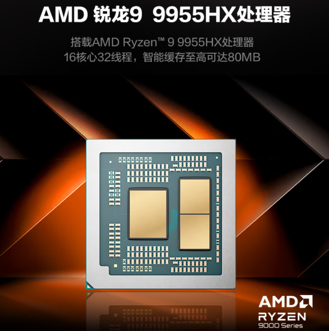 直接用上了AMD最新的Ryzen 9000 HX的旗艦型號,R9 9955HX,ZEN5架構,16個大核心,芯片規格上與臺式機R9 9950X類似,而蛟龍16 Pro 2025與極光X Pro最大的區別,也就在CPU、主板、外觀上,尤其是CPU,