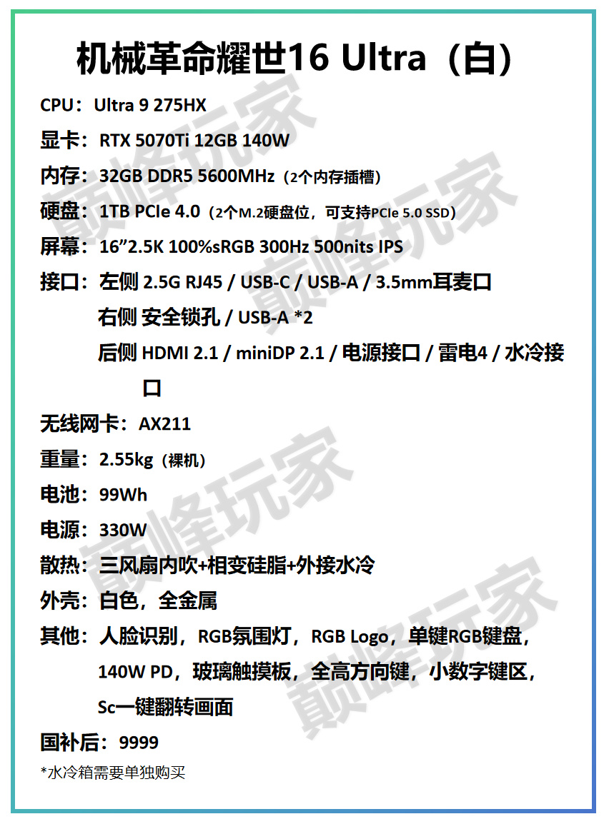 與國補後12999那個RTX5080的耀世16Ultra,同款的三風扇內吹+可外接水冷模具,相同配置,就GPU、電源等有差別,價格便宜3000,顯然RTX5070Ti的耀世16Ultra性價比要更高,